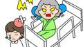 D看護師は、心電図モニタと自動血圧計を装着した。